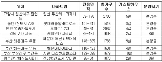 두산건설이 일산서구 탄현동에 분양 중인 '일산 두산위브더제니스'는 게스트하우스를 각국의 나라 테마별로 특색 있게 구성되어 인기가 더 높다. 이 단지 게스트하우스는 파리, LA, 두바이, 도쿄, 서울 등 5가지 테마로 조성되어 방문한 손님들에게 여행의 즐거움을 안겨줄 수 있어 인기가 높다.